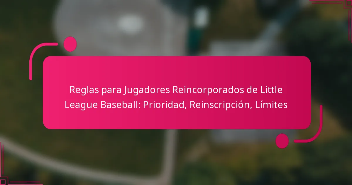 Las reglas para jugadores que regresan de la Liga Pequeña de béisbol definen la elegibilidad y prioridad para los jugadores que han participado en temporadas anteriores. Estas reglas son cruciales para asegurar que los jugadores que regresan tengan una oportunidad justa de reintegrarse a sus equipos mientras se equilibran las necesidades de los nuevos jugadores.