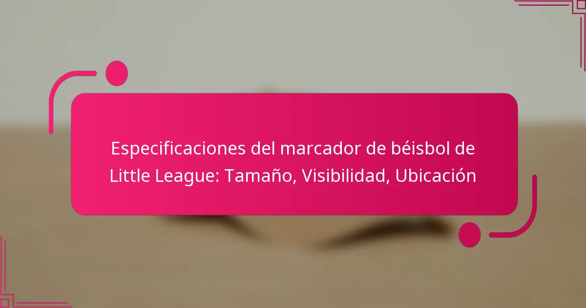 Los marcadores de béisbol de Little League deben cumplir con especificaciones específicas para garantizar visibilidad, durabilidad y cumplimiento de los estándares de la liga. Los factores clave incluyen dimensiones, materiales, tecnología de visualización, límites de peso y adherencia a las regulaciones establecidas.